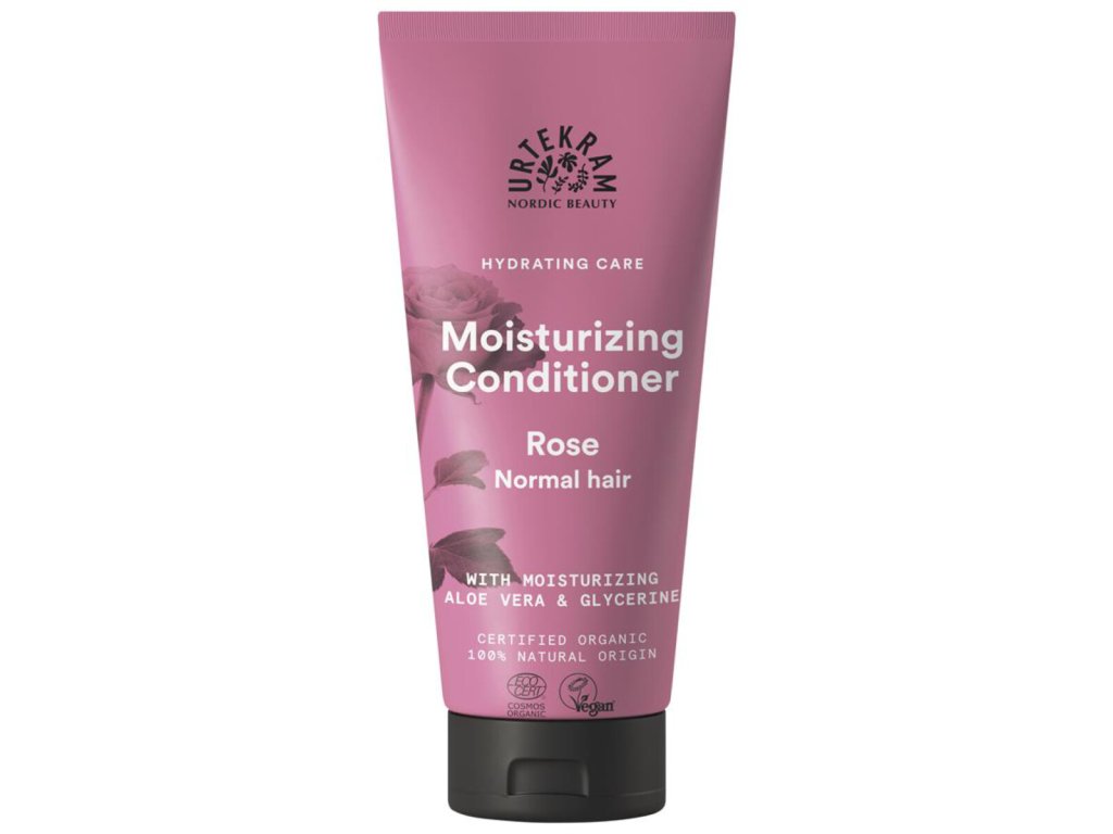 Růžový kondicionér ve spreji Urtekram usnadňuje rozčesávání vlasů a současně je chrání před dehydratací a poškozením při úpravě horkým vzduchem. Složení bohaté na množství výtažků z Aloe vera, rostlinný glycerin a růžovou květovou vodu uzamyká ve vlasech hydrataci, zjemňuje jejich strukturu a chrání před třepením. Kondicionér lze použít také jako intenzivní bezoplachovou péči.