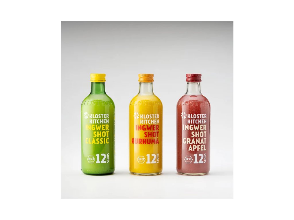 Zázvor potřebuje být jemně nasekán s velkou láskou a rychle zpracován. Má to své důvody. Čím větší řeznou plochu máte, tím lepší ingredience a tím i "chuť" se mohou smíchat s prostředím a obohatit ho. Kromě toho jsou esenciální oleje obsažené v zázvoru těkavé. Čím rychleji zázvor zpracujete, tím více ho máte. A protože to není tak snadné, získat ze zázvoru to nejlepší ručně doma, vyvinuli v Kloster Kitchen pro tento účel speciální proces zpracování zázvoru. Pokud si chcete ušetřit veškerou práci a přesto si užít všech výhod zázvoru, měli byste zázvorové shoty ochutnat.