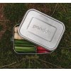 Uzavíratelný box na potraviny vyrobený z odolné nerezové oceli se silikonovým těsněním a přepážkou. Kapacita 800 ml.