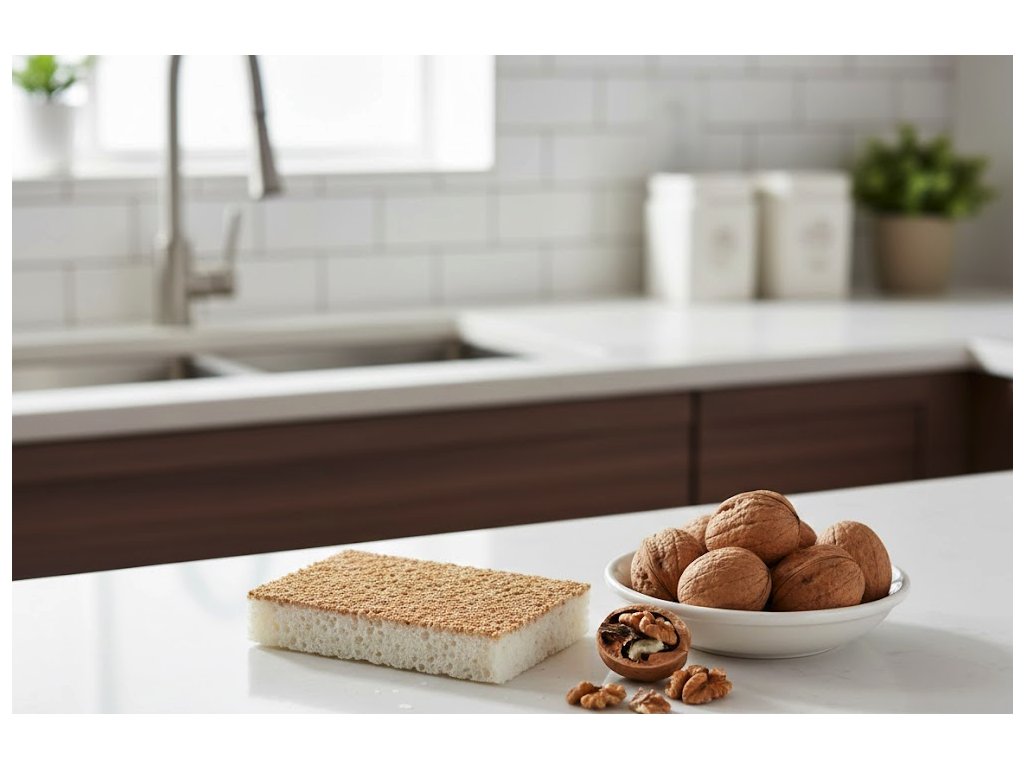 Díky použití přírodních pojiv a vláken jsou tyto houbičky velmi odolné a netrhají se. Ořechové skořápky působí jako jemné, ale účinné brusivo, které je šetrné k povrchům, ale nekompromisní k nečistotám.