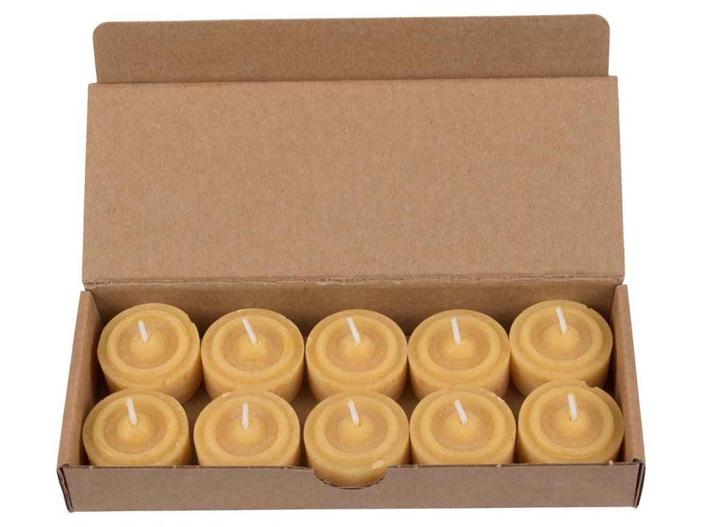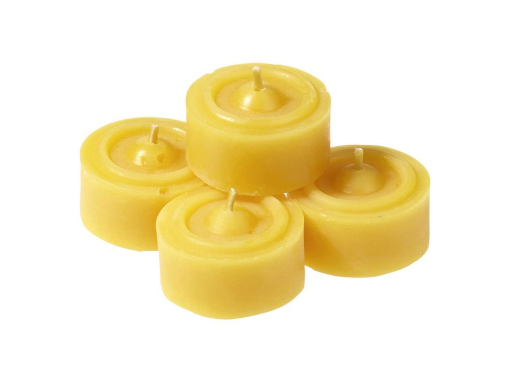Vysoce kvalitní čajové svíčky vyrobené z čistého včelího vosku. Kvalita odlitku zajišťuje rovnoměrné hoření. Čajové svíčky ze včelího vosku mají dobu hoření cca. 5 hodin.