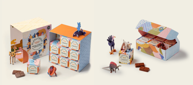 - PLAYinCHOC - čokoláda (která neobsahuje 14 nejčastějších alergenů, ale jen kakao, vanilku a kokos) a 3D kartonové puzzle se zvířátkem (mix 18 druhů)