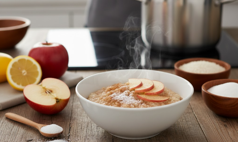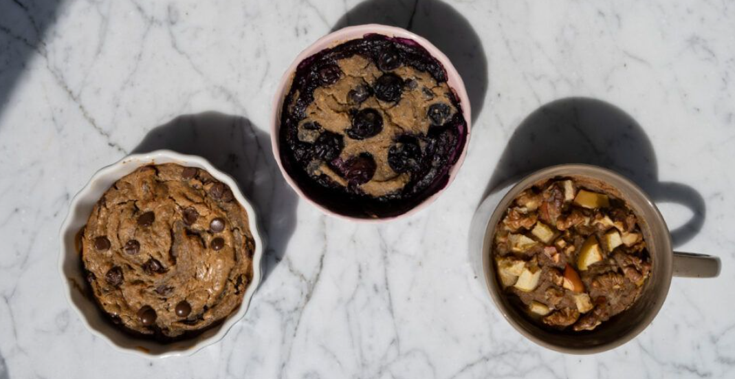 Ovesné vločky s jablečnou pastou, ovesným nápojem či mlékem, bourbonskou vanilkou a práškem do pečiva dejte do mixéru a rozmixujte na pyré. Těsto nalijte do zapékací mísy nebo šálku a dochuťte podle potřeby - například jablkem, vlašskými ořechy a skořicí nebo citronovou kůrou, borůvkami a mákem. Pro milovníky čokolády doporučujeme do těsta přidat 20 g čokoládových lupínků a do těsta přidat lžíci arašídového másla a nahrubo ho přeložit vidličkou.