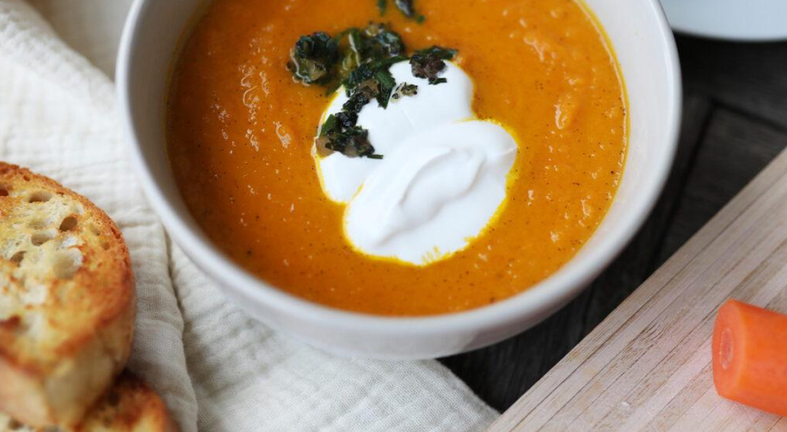 Vyjměte vanilkový lusk z hrnce a jemně rozmixujte mrkvovou krémovou polévku. Nyní do polévky přidejte vanilkovou dužinu a vše dochuťte pepřem, cukrem a špetkou kajenského pepře. Veganskou smetanu vyšlehejte a polévku podávejte s kopečkem smetany a krajícem čerstvého chleba.