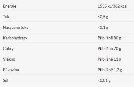 NUTRIČNÍ/KALORICKÉ HODNOTY NA 100g