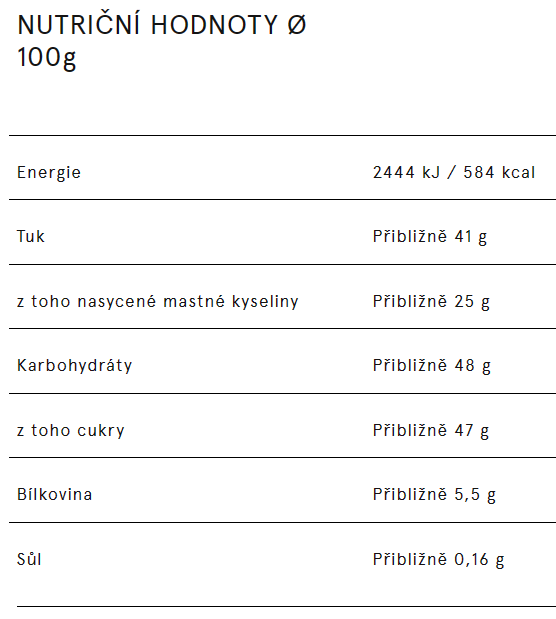 Kakao: minimálně 40 %, obsah mléka: 15 %
