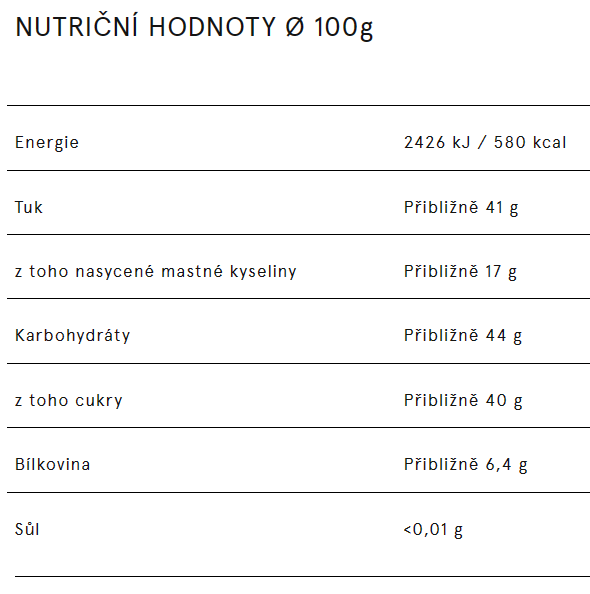 Použité je pouze vysoce kvalitní bio Trinitario z Dominikánské republiky a Panamy, případně jemná odrůda kakaa Criollo.